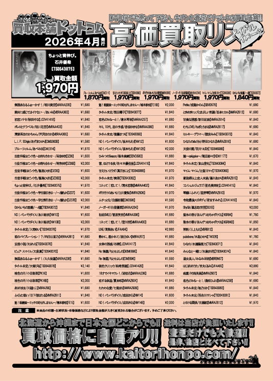4月14日迄 1390円買取 4月30日迄 1110円買取